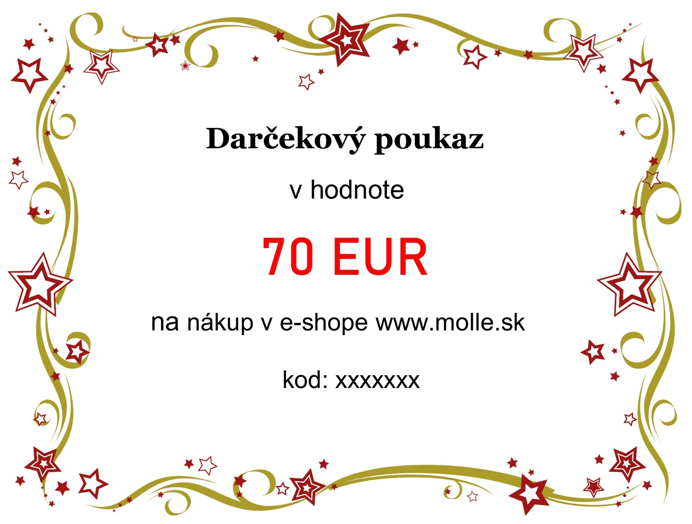 Darčekový poukaz v hodnote 70 € na nákup v e-shope www.molle.sk.